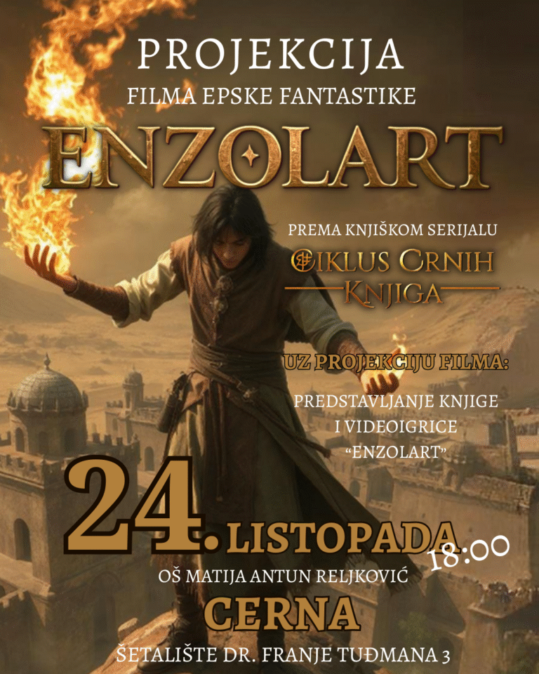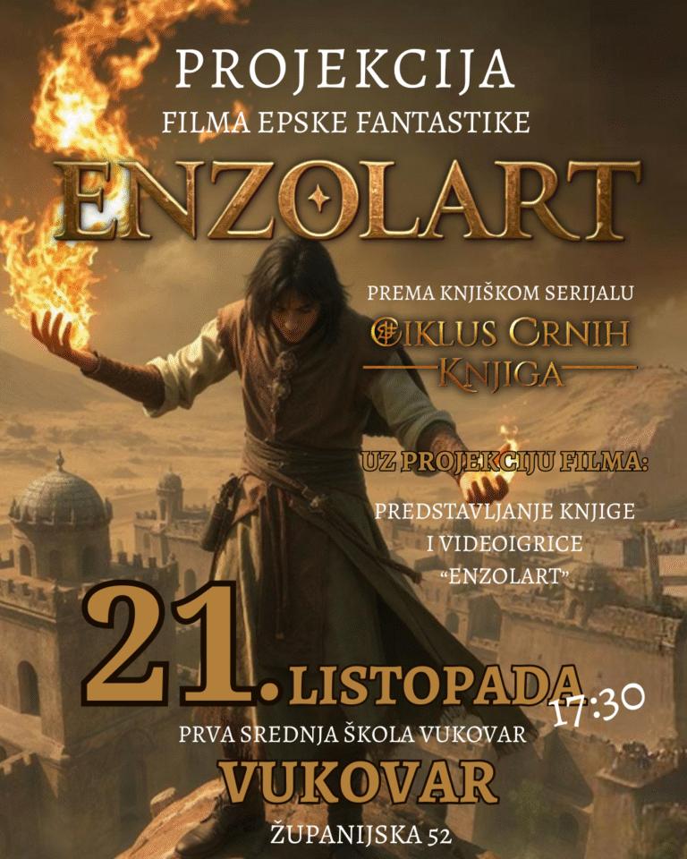 Projekcija filma Enzolart: “Prva srednja škola Vukovar”, Vukovar, 21. listopada 2025., 17:30h Iza nas je 4. spektakl epske fantastike “Enzolart” održan u Prvoj srednjoj školi Vukovar, pred 60-ak učenika 😃✨✨ Ovaj put smo naučili još više, a održavanje cijelog događaja…
